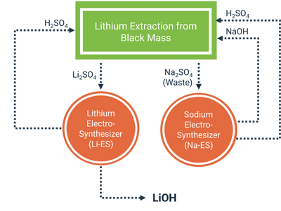 EDAC's electrosynthesizer can split both lithium and sodium salts. For some battery recyclers, the process flow includes the creation of Lithium Sulfate and Sodium Sulfate waste. EDAC can manage both of these streams to produce the final Lithium Hydroxide used in batteries, and to help recycle the sodium sulfate waste into use streams of sodium hydroxide (base) and sulfuric acid.