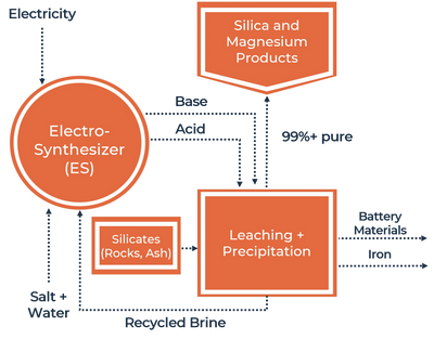 EDAC's Silicate Rock Refinery produces 99%+ pure silica and magnesium products that are low cost and carbon-free. We generate our own acid (HCl or H2SO4) and base (NaOH) using our proprietary Electrosynthesizer that makes acid and base at less than half the cost of chlor-alkali.